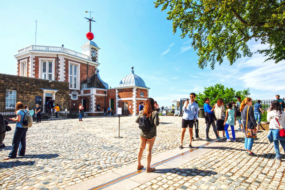 Обсерваторія заснована в XVII столітті для уточнення життєво важливих для мореплавців координат. Зараз тут знаходиться музей астрономічних і навігаційних пристроїв. Найбільш відвідуваним місцем обсерваторії є нульовий меридіан – точка відліку часових поясів. Позначили його латунною стрічкою, яка перетинає двір будівлі. Відвідувачі музею мають рідкісну можливість встати однією ногою в західній півкулі, а іншою в східній. Меридіан також показаний яскравим зеленим променем лазера, що виходить із обсерваторії на північ. Його добре видно в небі нічного Лондона.