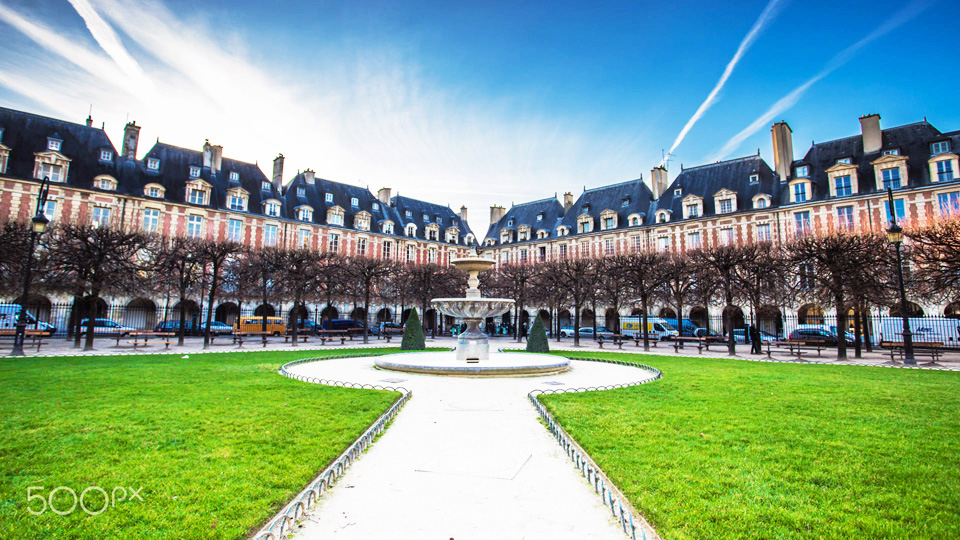 Найстаріша площа Парижа, вигляд якої майже не змінився з XVII століття. Сюди приходять помилуватися на стрункий архітектурний ансамбль історичних будівель з червоної цегли зі вставками сірого каменю, посидіти в затишному Сквері Людовика XIII, насолоджуючись шумом води в витонченому фонтані, заглянути в дім-музей Віктора Гюго, побродити по дворику-лабіринту Палацу Сюллі, з яким площа пз’єднується через арку.