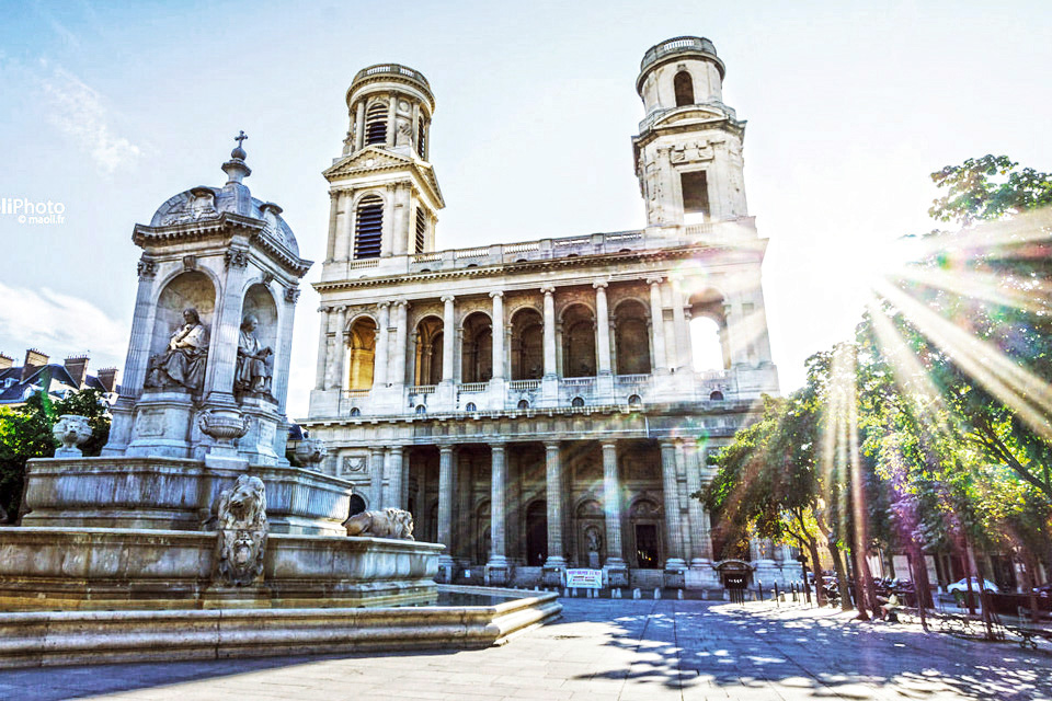 Класична білокам’яна Церква Сен-Сюльпіс виділяється серед храмів Парижа своїм оригінальним головним фасадом з дзвіницями, зведеними в різних стилях. Та не тільки архітектурні особливості споруди притягують численних туристів. Всередині церкви можна побачити врізану в мармурову підлогу мідну смугу – меридіан, який розсікає будівлю точно по осі північ-південь і до 1884 року використовувався як нульовий. Також варті уваги фрески видатного живописця Ежена Делакруа та розташований перед храмом фонтан Чотири єпископи.