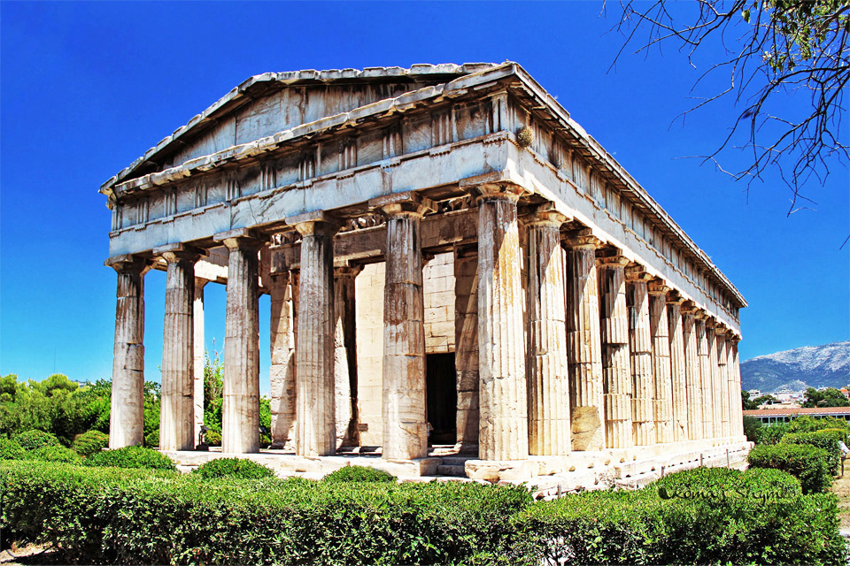 В північно-західній частині Афінської агори, на пагорбі Агорайос, можна побачити найкраще збережену серед усіх давньогрецьких культових споруд. Храм Гефеста присвячений богу вогню та ковальства, що на відміну від інших богів не цурався фізичної праці. Зведений в V столітті до нашої ери він став першою будівлею в Афінах, виготовленою з мармуру. З приходом до Греції християнства і до 1834 року храм використовувався як православна Церква Святого Георгія Акаматіса.