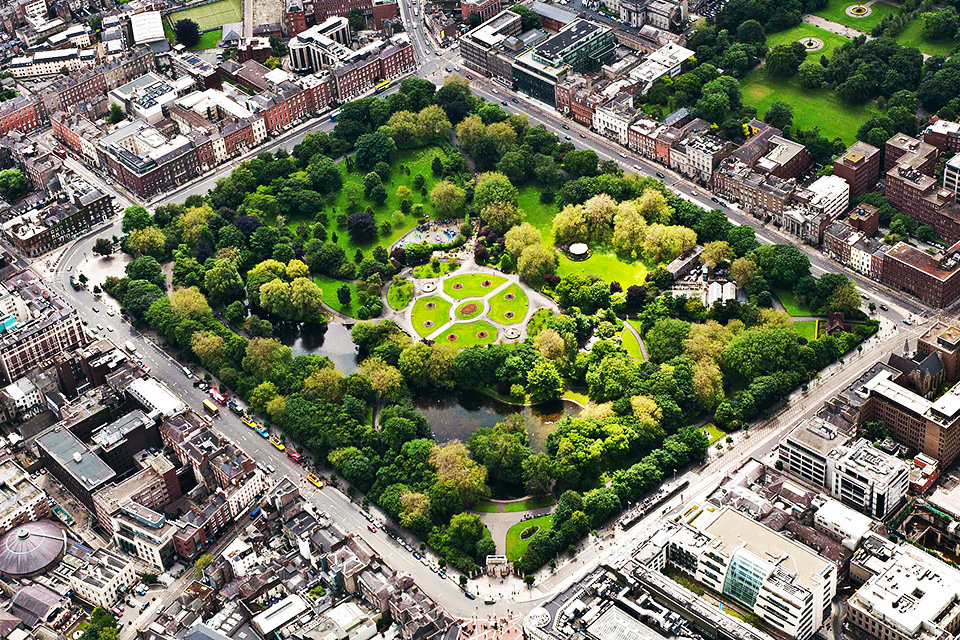 Невеликий громадський парк, розташований в центрі Дубліна, в оточенні головних вулиць історичної частини міста. Сучасна ландшафтна композиція Парку Святого Стівена була спроектована в XIX столітті у вікторіанській традиції з елементами романтизму. Звивисті алеї, декоративні водойми та ретельно підібрана рослинність створюють відчуття ізольованості від міського шуму, попри близькість жвавих транспортних артерій.