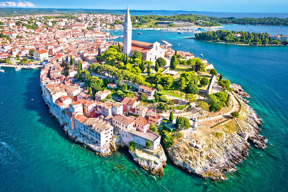 Історичне ядро Ровіня сформувалося на невеликому скелястому півострові, над яким височіє архітектурна домінанта поселення – Церква Святої Євфимії. З дзвіниці церкви відкривається мальовничий панорамний краєвид, який охоплює не лише старовинні вулички міста, а й численні прибережні острівці Адріатичного моря.