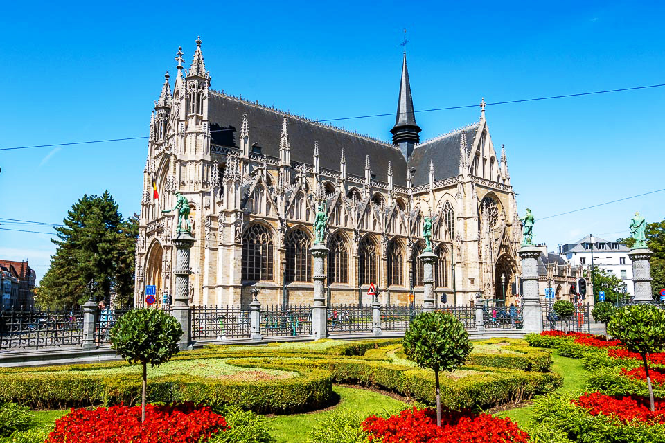 Церква Богоматері Саблонської з’явилася завдяки брюссельській гільдії арбалетників, яка профінансували побудову храму. Зведена в XV столітті споруда стала яскравим зразком пізньої готики. Архітектура церкви вирізняється стрімкими динамічними пропорціями, великими яскравими вітражами та багатим зовнішнім і внутрішнім оздобленням. На кожній з 12 колон, що утворюють центральний простір будівлі, була встановлена статуя одного з апостолів. Пізніше до храму були добудовані дві каплиці в бароковому стилі.