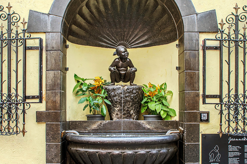 Скульптура Пісяюча дівчинка задумувалася як своєрідний «жіночий аналог» знаменитої статуї Пісяючий хлопчик, яка давно стала символом Брюсселя. Фонтан з бронзовою статуєю встановлений в провулку неподалік від центральною брюссельської площі Гран-Плас. Автор скульптури хотів таким чином встановити рівність між чоловіками і жінками, виправивши несправедливість, яка тривала понад п’ять століть. Монети, що традиційно кидають у фонтан, збираються та використовуються для медичних досліджень.